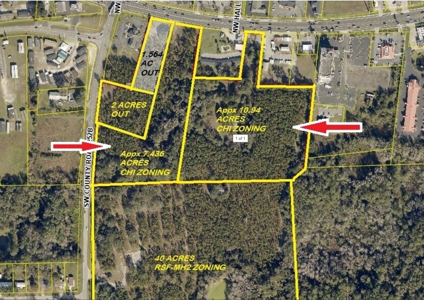 Cette parcelle a 2 bandes de propriété donnant sur l'US-90 (370 pi et 100 pi) plus une façade d'environ 1 973 pi sur le CR-252B (la façade est approximative - chiffre exact à déterminer par sondage) ; le zonage est CHI pour une parcelle de 21 acres avant US-90 et CI pour une parcelle de 40 acres donnant sur le CR-252B ; la propriété est dans les limites de la ville ; toutes les commodités sur la propriété sont telles quelles ; prix indicatif basé sur valeur du terrain seulement ; anciennement terrain de camping RV