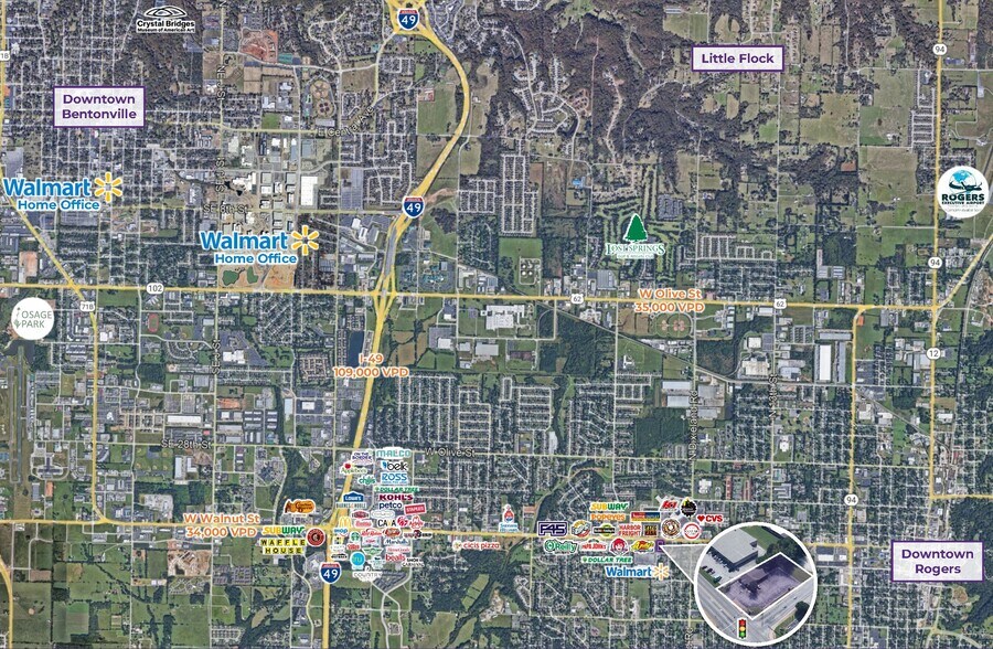 - Less than 2 miles to I-49 (109,000 VPD), 5 minutes to Downtown Rogers, and 10 minutes to the Walmart Home Office in Bentonville