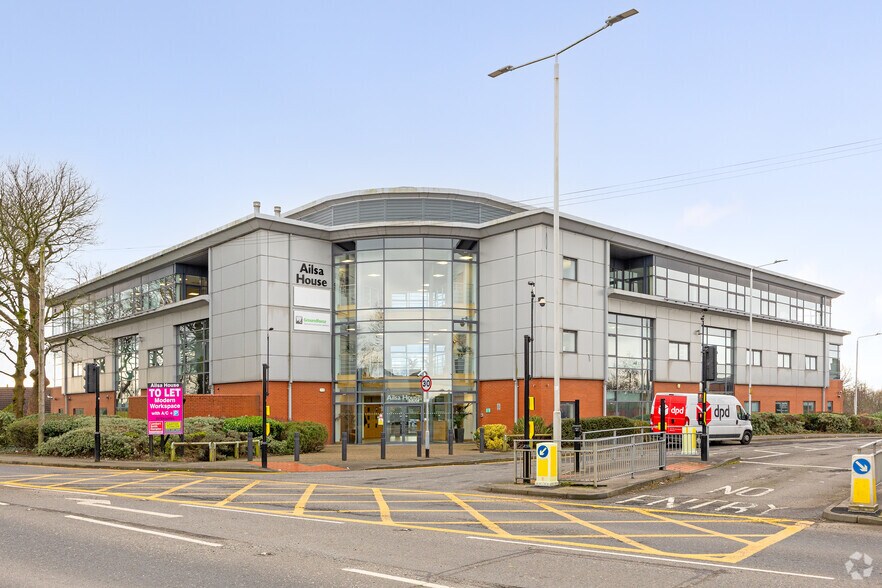 Ailsa House est un immeuble de bureaux moderne de trois étages doté d'une élévation de briques et de panneaux composites et d'un grand vitrage.