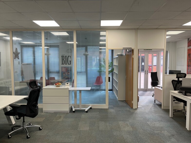 Bureaux autonomes situés dans un parc d'affaires. Entrée par la cour et porte de chargement arrière.