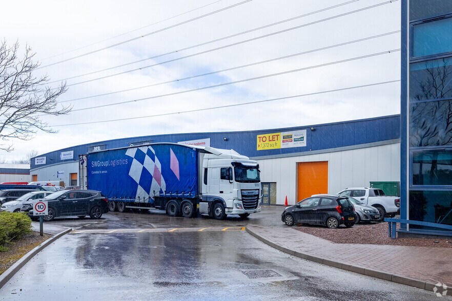 The unit features a clear internal height of 5.6 meters, a robust three-phase power supply, and an electric roller shutter door for efficient loading and unloading. A partially glazed frontage enhances natural light and provides a professional appearance for trade counter or customer-facing operations. The estate benefits from strong regional positioning, making it ideal for businesses seeking strategic distribution or trade presence.