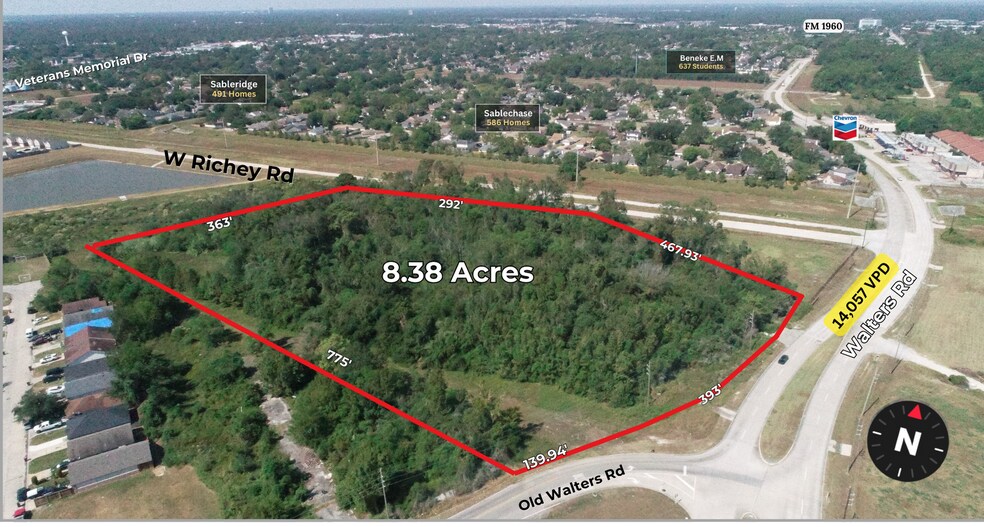 Emplacement privilégié pour le développement : La propriété est située près des routes principales telles que le chemin W Richey et le chemin Old Walters, offrant une excellente accessibilité pour divers types d'aménagements commerciaux ou à usage mixte. Ce secteur est une plaque tournante pour les quartiers résidentiels et les activités commerciales, ce qui le rend attrayant pour les promoteurs qui cherchent à capitaliser sur les deux.