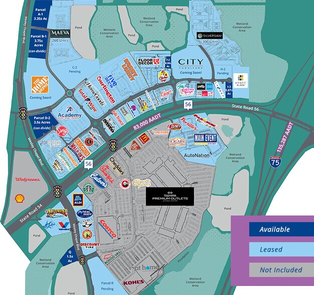 Le centre-ville de Cypress Creek est une destination de magasinage super régional dans le corridor dynamique de croissance de la chapelle Wesley. Le centre-ville à usage mixte comprend plus de 150 acres autour des points de vente Premium Simon Tampa et de Costco, à l'intersection de l'autoroute I-75 et du chemin State 56.