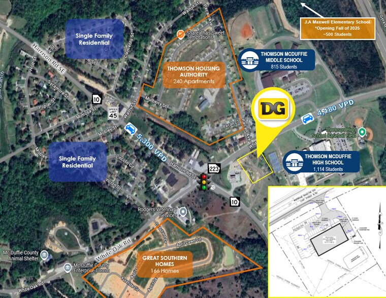 - Located along GA-223, a key thoroughfare in east-central Georgia, connecting Thomson to Harlem and Grovetown while providing access to Augusta metro
