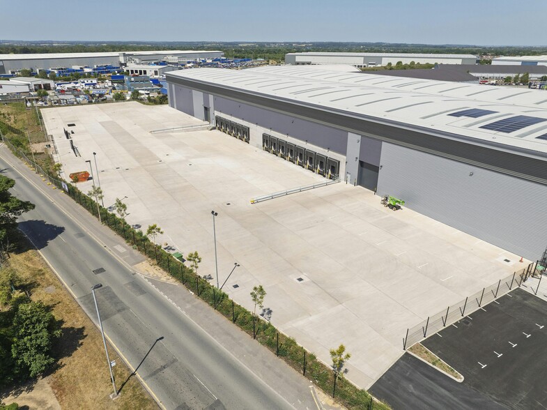 A new 153,700 sq ft distribution warehouse currently under construction at Fradley Park. The building benefits from the following specification: 12.5m clear height, 14 dock loading doors, 2 level access doors, up to 50m loading yard and 176 car parking spaces. The unit will be available for occupation from Q2 2025 at a guide rent of £9.25 per sq ft.