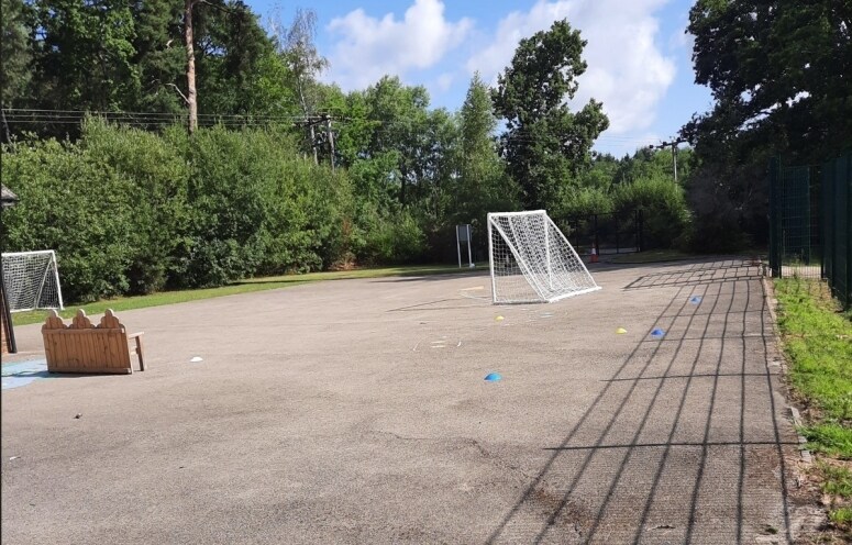 The building is sited in the middle of the plot allowing car park in front of the building and play area to the rear. The site has secure metal fencing.