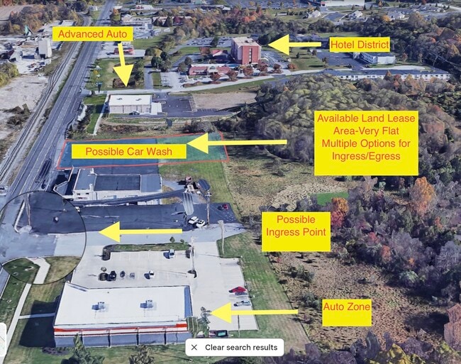 Le terrain est adjacent à des utilisateurs nationaux et régionaux établis, y compris AutoZone, Advance Auto Parts, Enterprise Car Rental, plusieurs hôtels, et près d'un grand projet de développement résidentiel, soutenant une forte demande quotidienne et une croissance à long terme. Des options flexibles d'entrée et de sortie sont disponibles en utilisant les découpes de bordure existantes, avec la possibilité de demander un permis d'accès routier PennDOT pour un accès personnalisé au site selon l'utilisation du locataire et le plan du site.