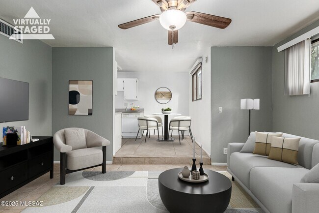 Santa Cruz Villas a été rénovée et améliorée en 2022 avec des améliorations capitales de qualité à l'intérieur et à l'extérieur des unités, améliorant grandement l'expérience de vie des résidents. Les récentes améliorations intérieures incluent des carreaux de céramique modernes de 18 pouces, de nouveaux placards, comptoirs, éviers sous plan en acier inoxydable avec robinets modernes en col de cygne en acier inoxydable, de nouveaux appareils électroménagers, y compris des lave-vaisselle et des micro-ondes intégrés, de nouveaux stores, de nouveaux luminaires modernes, des ventilateurs de plafond modernes à double flux contrôlés à distance et des laveuses et sécheuses dans l'unité ont été installées. Dans les salles de bains, des douches carrelées de 12 x 24 pouces avec incrustation complètent les nouvelles vanités modernes avec des comptoirs en quartz, de nouvelles toilettes à faible débit et des robinets et luminaires modernes. Les récentes améliorations extérieures incluent une nouvelle peinture/finition extérieure bicolore, un nouveau paysage attrayant nécessitant peu d'entretien avec des plantes indigènes de l'Arizona, des cactus et des palmiers désertiques.