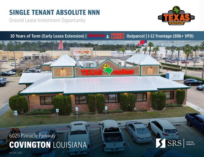 Les principaux employeurs de la région de Covington et de la paroisse de St. Tammany incluent Globalstar, Zen-Noh Grain Corporation, POOLCORP, St. Tammany Health System / Hôpital de la paroisse de St. Tammany, et le bureau régional de Chevron qui emploient ensemble plus de 10 000 employés. D'autres détaillants nationaux à proximité immédiate incluent Walmart, Lowe’s, Home Depot, ALDI, Office Depot, Planet Fitness, Starbucks, Chick-fil-A, Chipotle, IHOP, Outback Steakhouse, Raising Cane’s, Smalls Sliders, Burger King, Taco Bell, Wendy’s, Smoothie King, Firehouse Subs, Waffle House, Jimmy John’s, Dunkin’, Arby’s, Popeyes, Circle K, Racetrac, Exxon, Fidelity Bank, Liberty Bank, Old Navy, Sport Clips, CVS Pharmacy, Urban Air, McDonald’s, Bath & Body Works, Victoria’s Secret, Sherwin-Williams, Whole Foods, Banana Republic, et AutoZone. C'est une excellente opportunité d'acquérir un actif bien situé dans un marché en croissance en Louisiane.