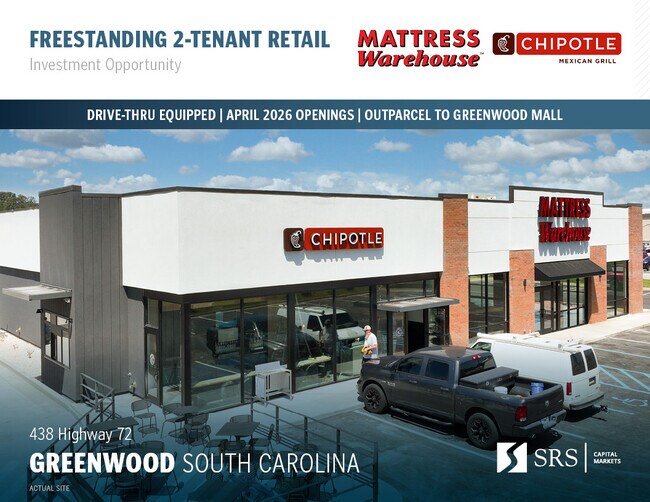 Marcus & Millichap a le plaisir de présenter à la vente ce Popeyes loué Absolute Net situé au 1211 Bypass 72 NE à Greenwood, en Caroline du Sud. La propriété en cause consiste en un bâtiment autonome de 2 145 pi2 avec un accès direct et est situé sur une grande parcelle de terrain de 0,96 acre.