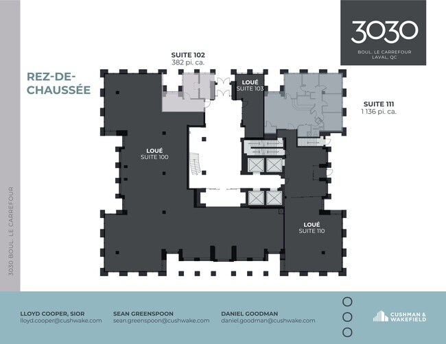 The Carrefour Medical est un bâtiment médical ambulatoire de classe « A » entièrement rénové à Laval, idéalement situé en face du centre commercial CF Carrefour Laval, avec un accès direct aux autoroutes 15 and 440, et à proximité de l'Hôpital de la Cité-de-la-Santé. The Immeuble offre une vaste gamme de services médicaux, notamment une clinique sans rendez-vous, des médecins de famille et des médecins spécialistes, ainsi que des services de santé complémentaires tels qu'un laboratoire, une pharmacie, des services d'imagerie diagnostique et de physiothérapie. Un vaste parking en surface est disponible sur place pour les locataires et les visiteurs.