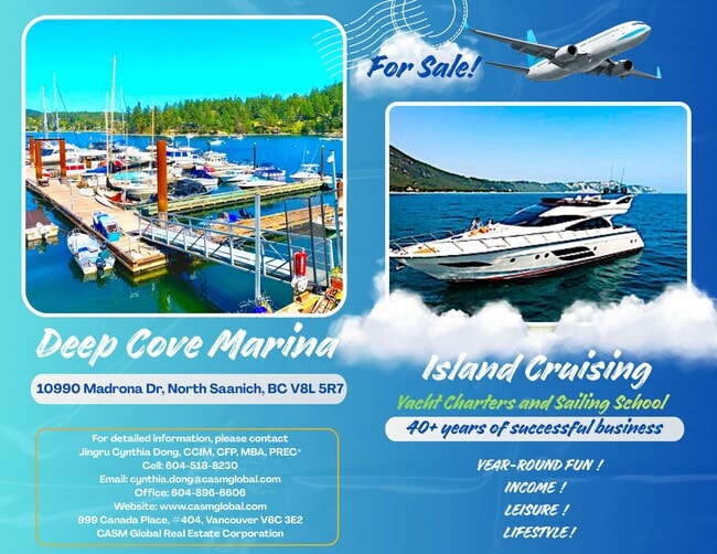 Deep Cove Marina offre une occasion rare d'acquérir une marina en bord de mer de premier plan dans l'un des marchés maritimes les plus restreints de l'île de Vancouver. Cette propriété de haute qualité, génératrice de revenus, s'étend sur deux lots titrés et comprend un bail de rivage à long terme, offrant environ 1 610 pieds linéaires de mouillage. Le site dispose d'un bâtiment commercial bien entretenu de 4 000 pieds carrés qui comprend des bureaux et une unité résidentielle, créant des sources de revenus diversifiées provenant du mouillage, de la location commerciale et des revenus locatifs résidentiels.