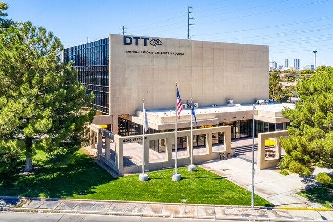 Southwest corner of Spencer and Sunset set back from Sunset about 300 ft. Conveniently located across from McCarren and has quick access on and off 215 and I-15. Just blocks away from the Las Vegas Strip and Executive airport. People park all day long on the landing strip to watch planes land. You do it from your window. Amazing views of Strip, Airport and Mountains.