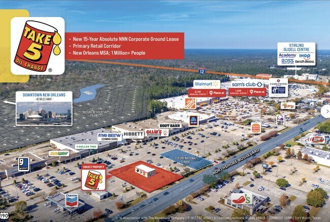 Major employers in the Covington and St. Tammany Parish area include Globalstar, Zen-Noh Grain Corporation, POOLCORP, St. Tammany Health System / St. Tammany Parish Hospital, and Chevron’s regional office that together employ over 10,000 employees. Other national retailers in the immediate vicinity include Walmart, Lowe’s, Home Depot, ALDI, Office Depot, Planet Fitness, Starbucks, Chick-fil-A, Chipotle, IHOP, Outback Steakhouse, Raising Cane’s, Smalls Sliders, Burger King, Taco Bell, Wendy’s, Smoothie King, Firehouse Subs, Waffle House, Jimmy John’s, Dunkin’, Arby’s, Popeyes, Circle K, Racetrac, Exxon, Fidelity Bank, Liberty Bank, Old Navy, Sport Clips, CVS Pharmacy, Urban Air, McDonald’s, Bath & Body Works, Victoria’s Secret, Sherwin-Williams, Whole Foods, Banana Republic, and AutoZone. This is a strong opportunity to acquire a well-located asset in a growing Louisiana market.