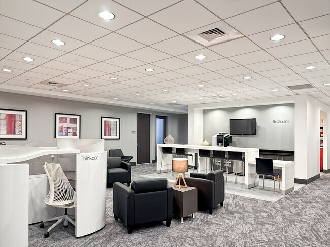 Megatron Workspaces tenants can access stand-out on-site amenities, including a warm, welcoming reception area, a contemporary kitchen with community seating, and fast, reliable Wi-Fi. Complimentary coffee, cold beverages, and snacks are available in the kitchen. The property can be accessed via keycard entry 24/7. Various professional business services are present, such as reception and mail handling services. Also, an on-site bookable conference room is available. The expansive layout encourages collaboration and innovation, making it an ideal environment for businesses looking to foster a dynamic and productive work culture.