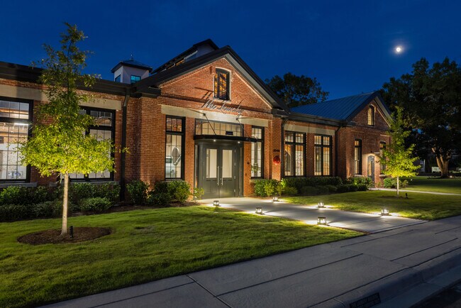 The design features an open layout respecting the historic character of the Laundry Building with soaring ceilings, exposed antique heart pine wood beams, trusses, fire sprinkler lines and spiral ductwork. The interior is exposed brick, including a massive brick archway with a mix of historic plaster walls and sleek concrete floors throughout. Existing steel sash windows and restored window openings with new windows flood the space with natural light. The full one acre of land is mostly green space with beautiful trees offering endless possibilities for outdoor seating and amenities with the iconic Babcock Building as a focal backdrop. A conceptual layout is provided envisioning several tenants.
