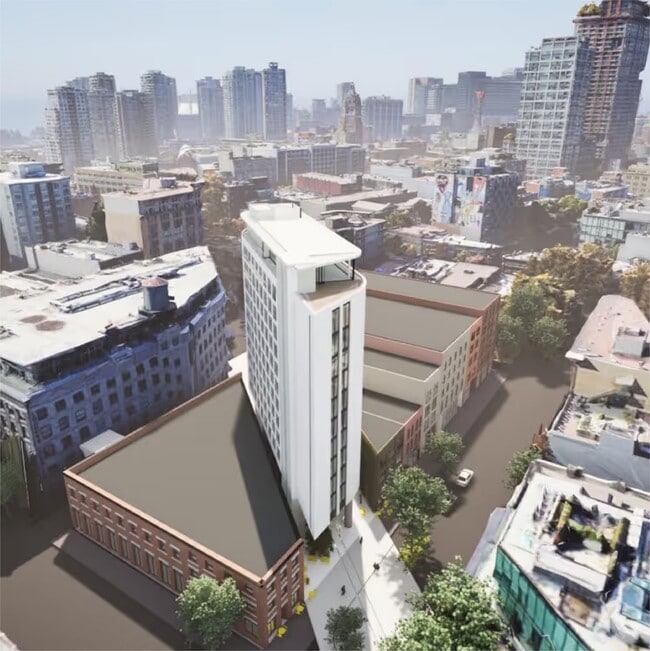 80 Powell Street presents a rare opportunity to develop a boutique hospitality asset at the eastern gateway to Gastown, one of Vancouver’s most iconic and culturally significant neighbourhoods. The site is currently improved as a surface parking lot and is the subject of an active development permit application for a 13-storey or 14-storey hotel with a destination rooftop restaurant. The proposed development has been thoughtfully designed to integrate with Gastown’s historic context, referencing the site’s former CPR railway alignment and off-grid orientation while introducing contemporary architecture that complements the surrounding heritage streetscape. A setback, double-height ground floor creates a highly permeable pedestrian realm, strengthening connections between Powell Street, the laneway, and adjacent public spaces. Crowning the building, the rooftop restaurant is envisioned as a publicly accessible destination offering panoramic views over the downtown waterfront, port facilities, Burrard Inlet, and the North Shore mountains. Positioned as a modern counterpart to Gastown’s historic western gateway, the project is designed to anchor the district’s eastern edge while contributing to the area’s continued revitalization and long-term economic vitality. 80 Powell Street offers investors a compelling opportunity to participate in the next chapter of Gastown — blending hospitality, placemaking, and heritage-sensitive design in a highly visible urban location.